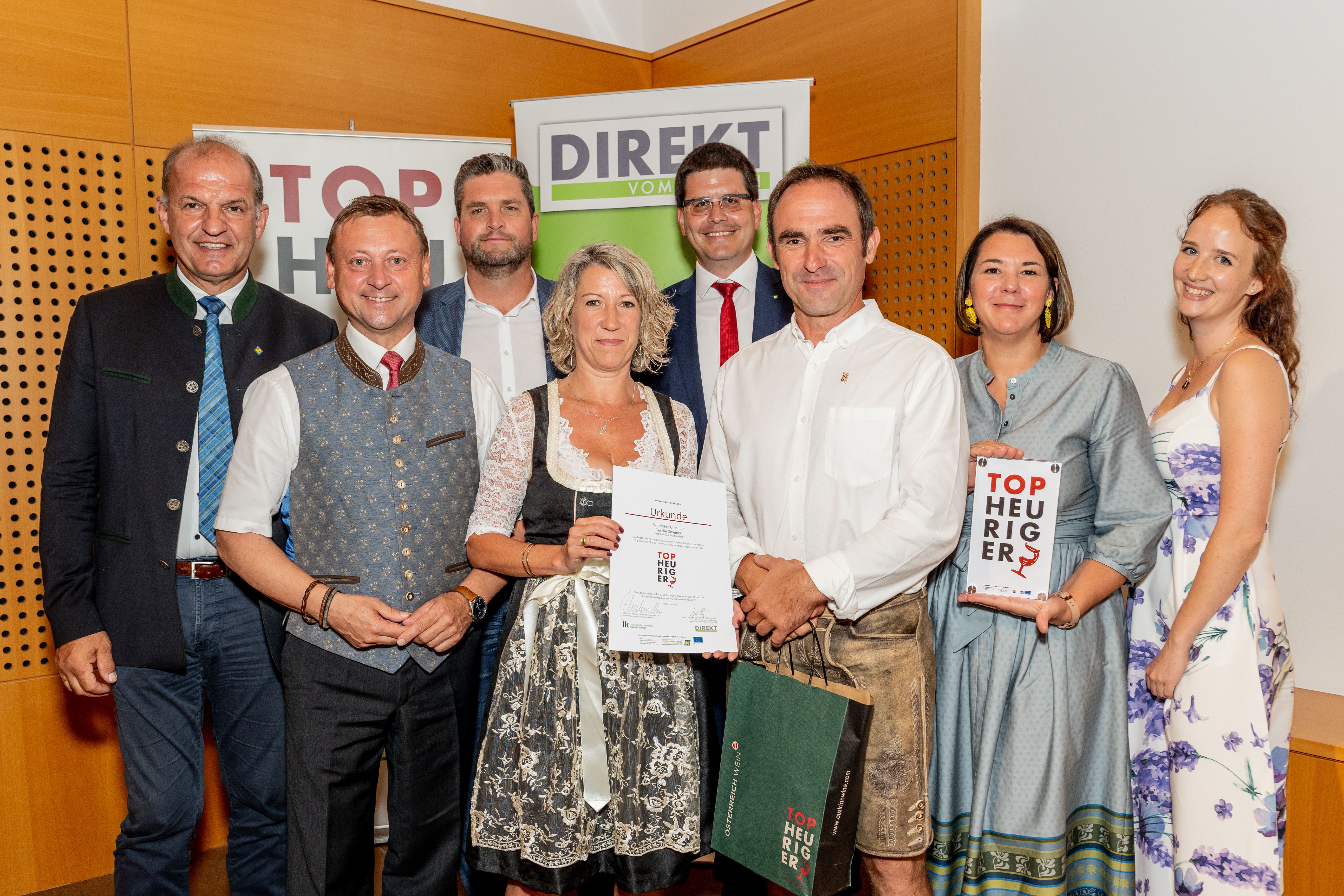Drei Betriebe wurden mit der Marke „Top-Heuriger“ neu ausgezeichnet. Sie gehören nun zu jenen 128 Betrieben, die niederösterreichweit für beste Qualität stehen.